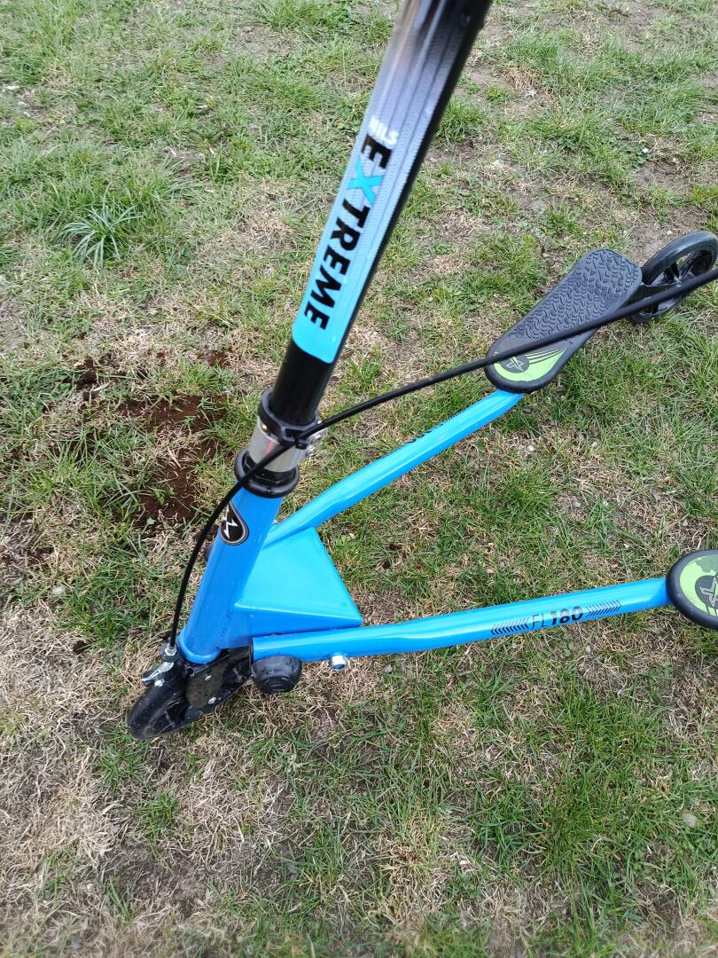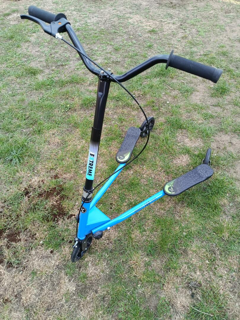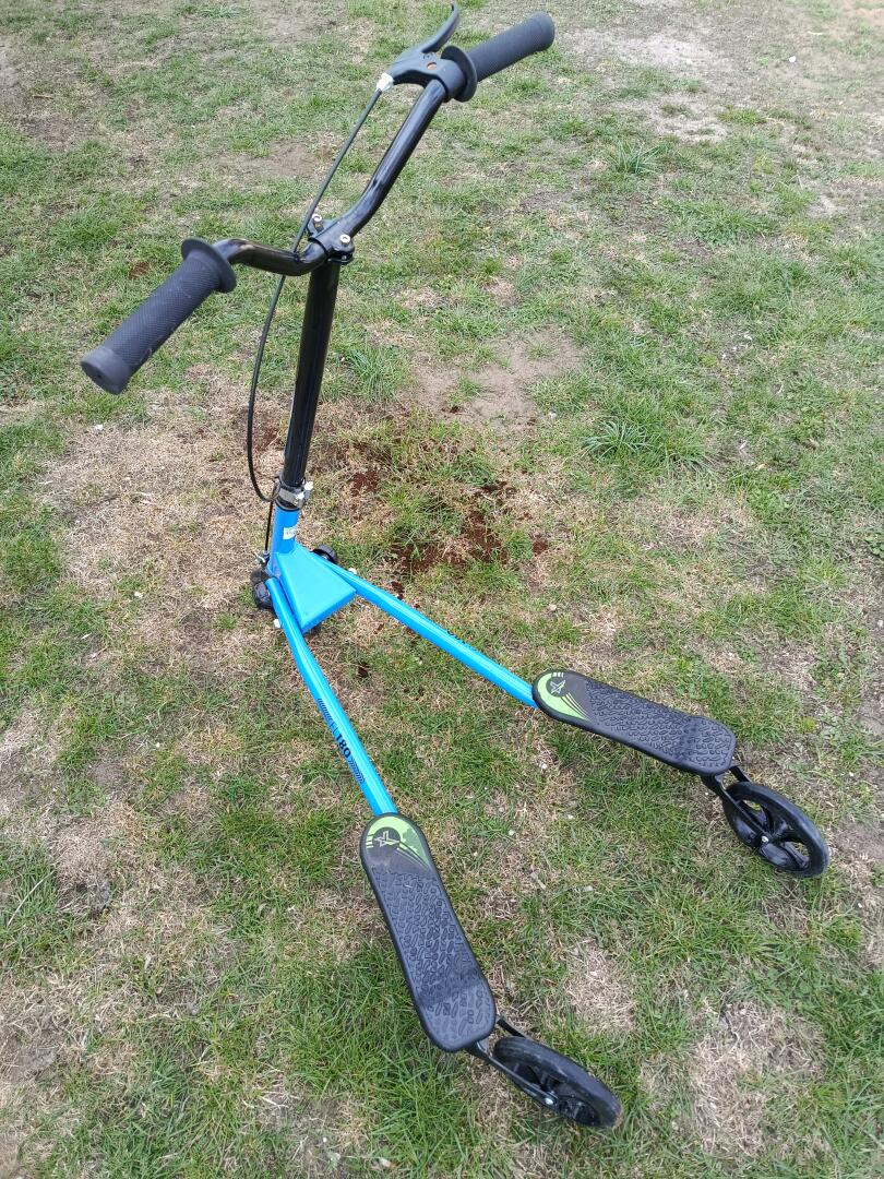 Hulajnoga trojkolowa dla młodzieży i dorosłych. Koła są skrętne. Nie trzeba się odpychać tylko balansować biodrami podobnie jak w jeździe na nartach super stan kilka razy używana i leży