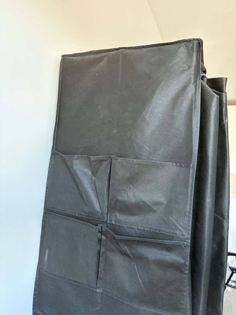 Sprzedam szafę materiałową zapinana na zamek, czarna, boczne kieszonki 175x150x45, stan bdb, używana pół roku.Polecam